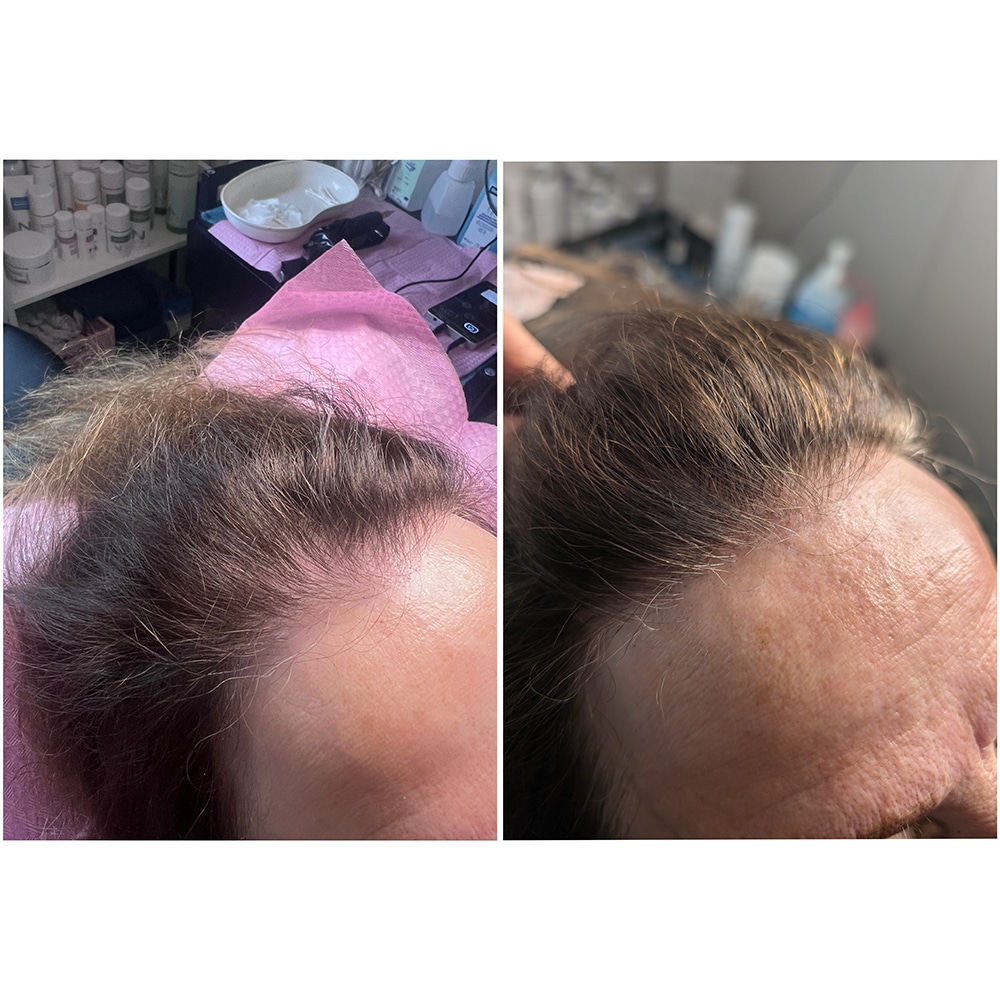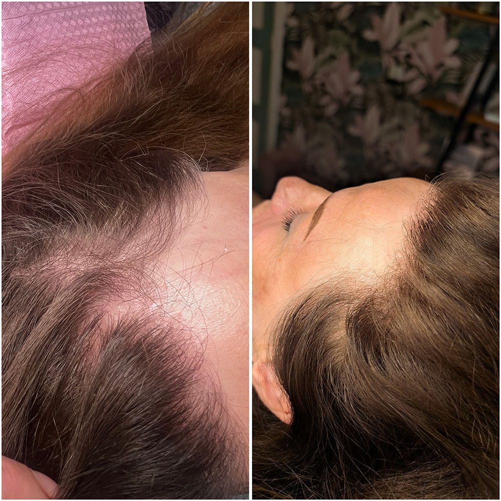 Aanvullend op de micro-needling behandeling is het belangrijk dat u thuis de ‘Scalp hair loss solution’ lotion gebruikt. Tijdens de micro-needling behandeling planten we zaadjes en deze lotion is het water voor de zaadjes, zodat ze kunnen ontkiemen en gaan groeien. Deze lotion is een kruidenoplossing die uw haar sterker en dikker maakt. Tevens beschermt de lotion tegen de werking van DHT, de echte oorzaak van haaruitval. Dit resuleert in een volle, vitale haardos. De eerste resultaten zijn al na 6 weken waarneembaar.